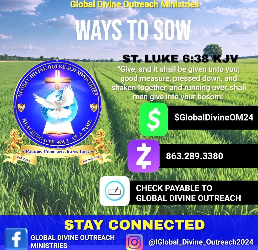 At GLOBAL DIVINE OUTREACH MINISTRIES, we are dedicated to spreading the Gospel of Jesus Christ, and giving back to our communities. We strive to show GODS, love through our actions. Our mission is to make a positive impact on everyone we come in contact with & serve.